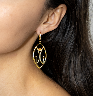 Feel the warmth and gorgeous GAUDESS glow of the GG logo cradling a powerhouse Carnelian gemstone at her heartspace. Dazzling Swarovski crystals are embedded in huggie hoops as her powerful sacred geometry brings together God/Goddess energy in empowered harmony.